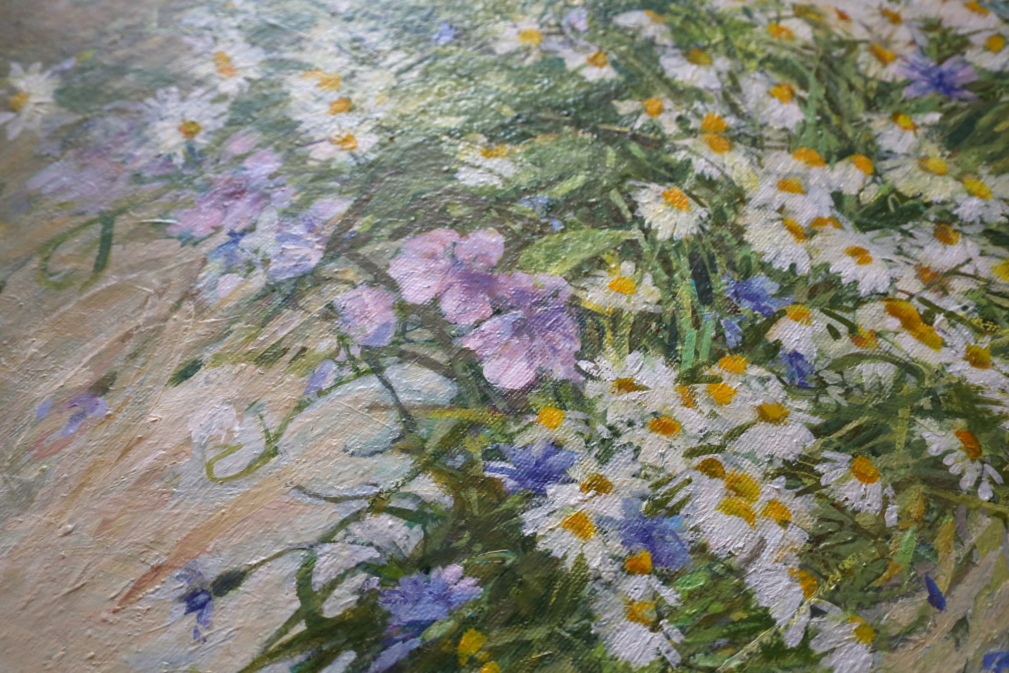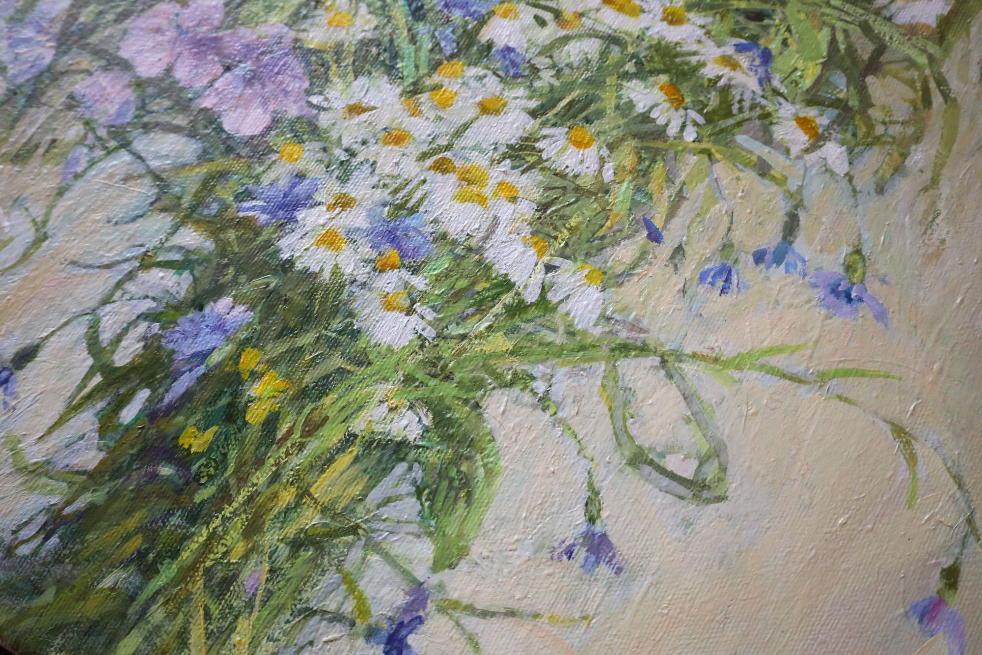 Obraz ręcznie namalowany przez znakomitego artystę Leszka Kurka . Przedstawia bukiet letnich kwiatów. Obraz w przyjemnej, jasnej kolorystyce.
