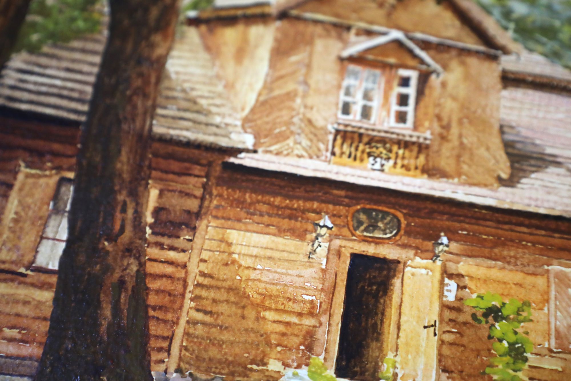 Mały obrazek ręcznie namalowany przez Kasjana Farbisza . Obraz przedstawia stary Dworek w Ożarowie.