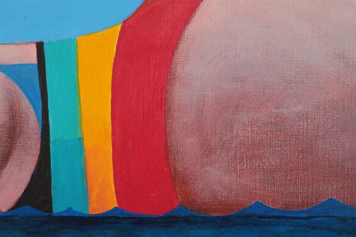 Obraz ręcznie malowany przez artystę na płótnie. Abstrakcyjny ekspresjonizm. Przedstawia kobietę w kolorowym stroju kąpielowym. Dla każdego, kto lubi dobrą sztukę i pozytywne wibracje.