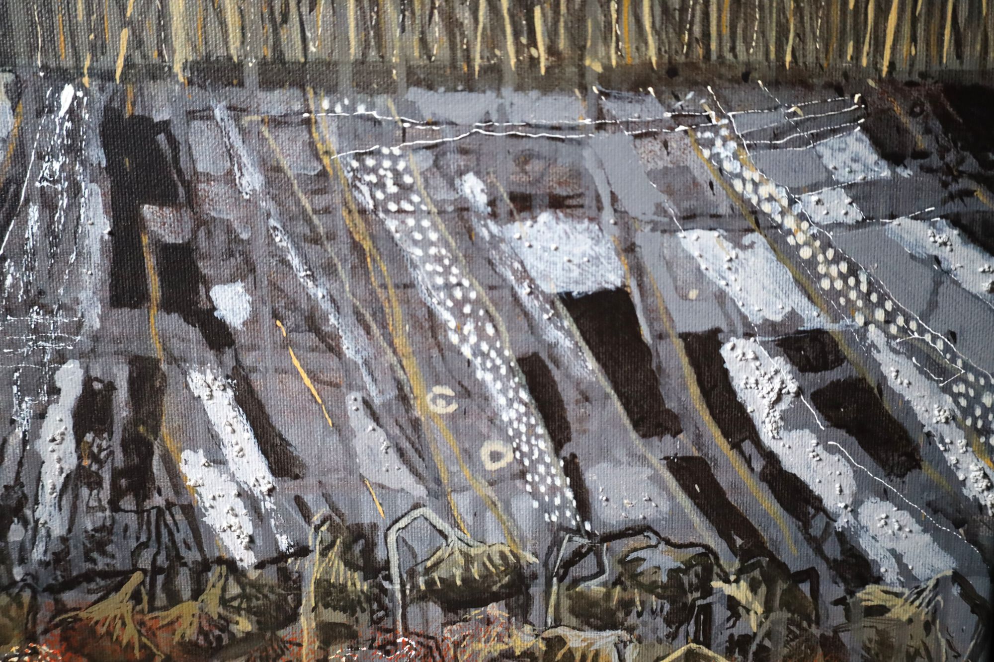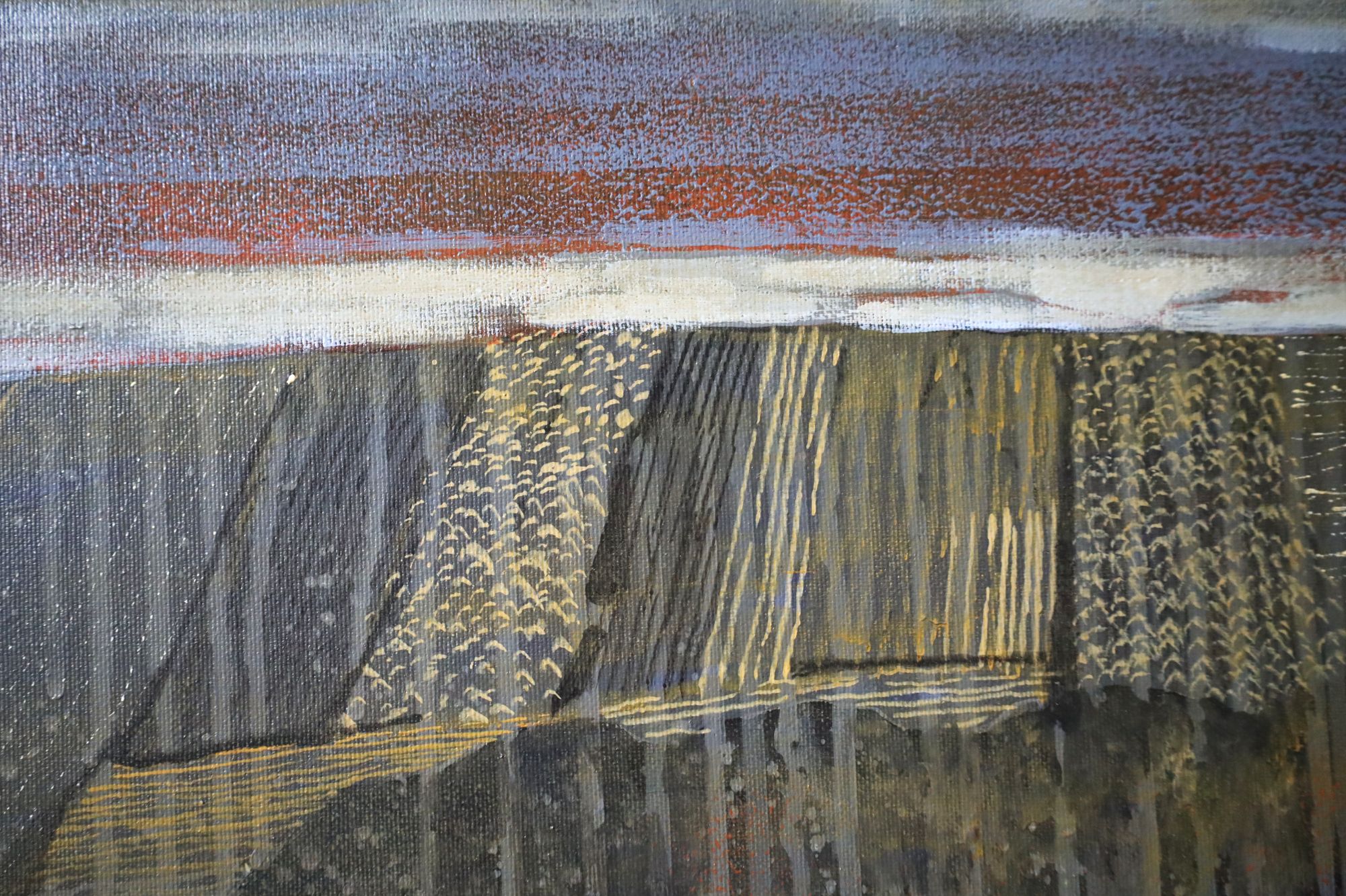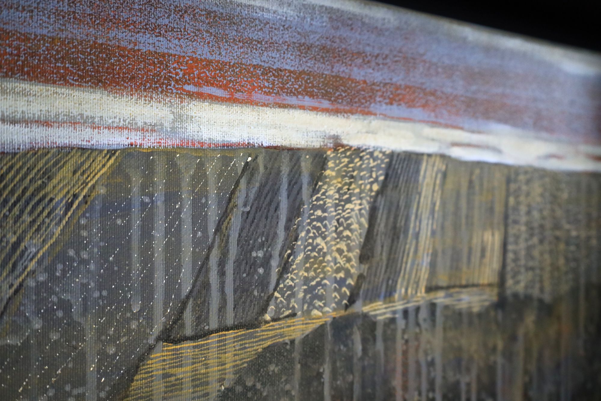 Obraz akrylowy na płótnie. Nowoczesny pejzaż. Inspiracją do powstania obrazu była francuska posiadłość La Meyfrenie położona nieopodal Verteillac. Obraz utrzymany w kolorach beżu i brązu. Oprawiony w wysokiej jakości ramę drewnianą typu american box, ręcznie wykończoną, wewnątrz czarna, matowa patyna, na zewnątrz płatkowana, postarzana.