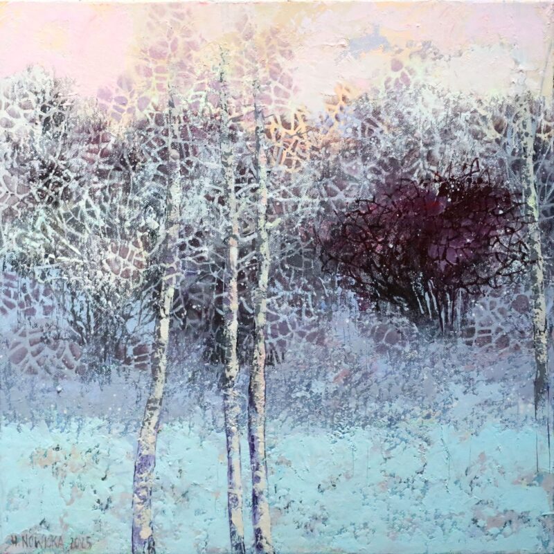 Jej wrażliwość artystyczna jest urzekająca. To, co przykuwa uwagę w obrazach Haliny Nowickiej, to rozproszone światło. Potrafi perfekcyjne uchwycić na obrazie ten moment ze świata natury, który zachwyca najbardziej. Tańczące promienie słońca na lekko wzruszonej od wiatru wodzie, ogniste zachody i mgliste wschody. Znakomita obserwatorka przyrody i miłośniczka kotów.