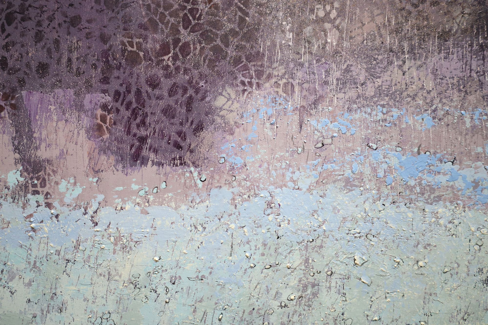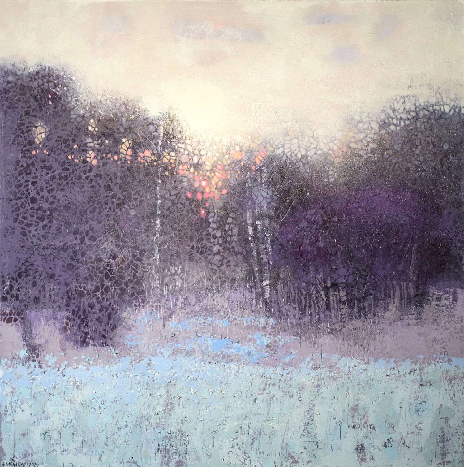 Obraz w stylu impresjonistycznym, przedstawiający zimowy pejzaż. Utrzymany w przyjemnych, jasnych, pastelowych kolorach. Obraz bardzo nowoczesny, wykonany techniką akrylową na płótnie. Idealny do sypialni. Duży format.