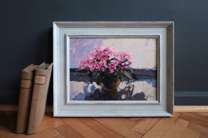 Ten wyjątkowy obraz impresjonistyczny z kwiatami przenosi widza w świat delikatności i piękna natury. Kwiaty w wazonie, przedstawione w odcieniach różu, emanują urodą i romantyzmem. Każdy szczegół został starannie namalowany ręcznie, co nadaje mu wyjątkowy charakter i oryginalność. Styl impresjonistyczny idealnie odzwierciedla piękno i delikatność kwiatów uchwyconych na obrazie przy pomocy gry świateł i delikatnych kolorów.