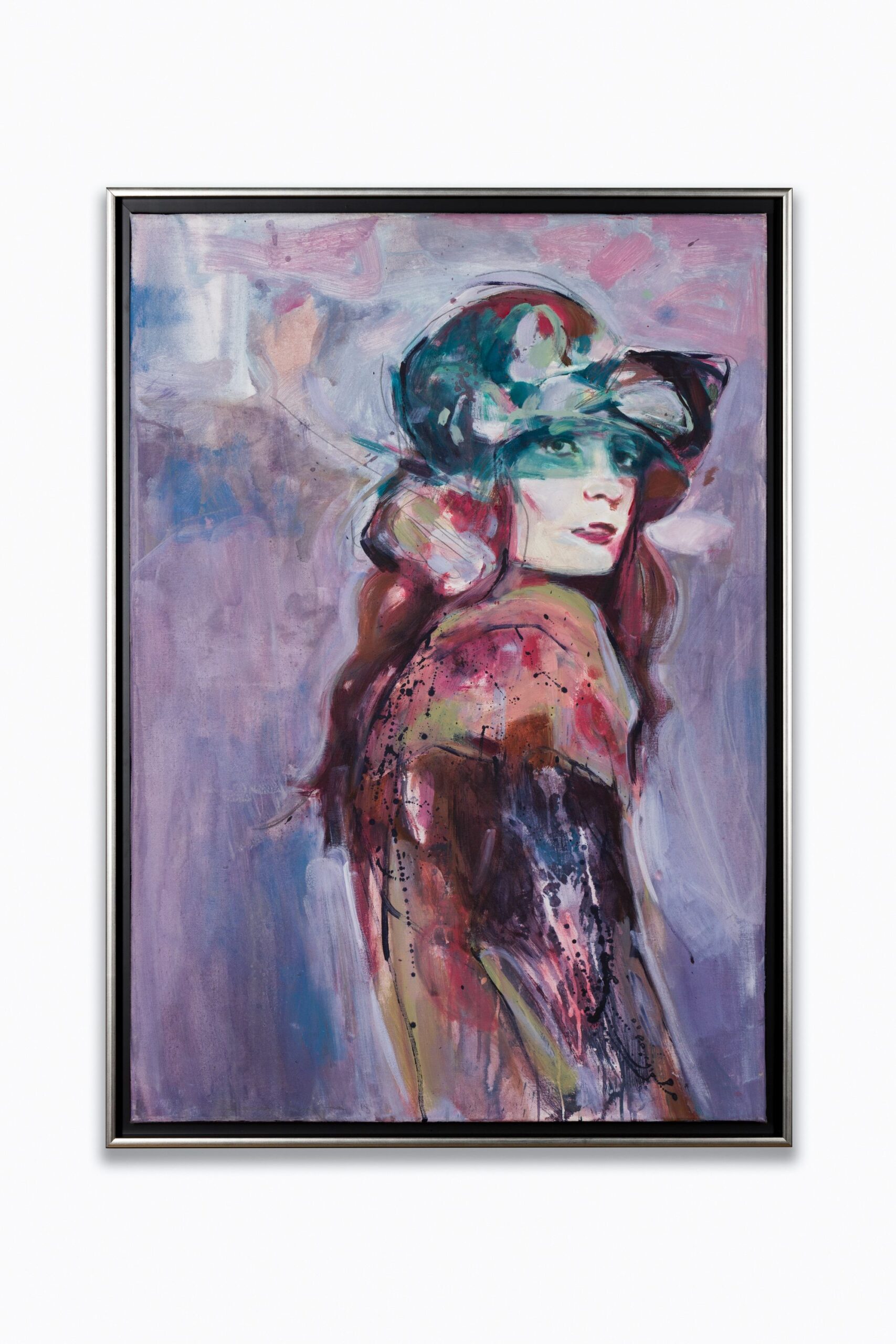 Abstrakcja przedstawiająca portret kobiety w kapeluszu. Paleta barw jest zaskakująco bogata, ale jednocześnie stonowana, co nadaje dziełu elegancji i równowagi. To dzieło sztuki jest doskonałym wyborem dla tych, którzy chcą wprowadzić do swojego wnętrza nie tylko piękną dekorację, ale także głęboki przekaz i inspirację. Obraz ten to połączenie abstrakcji i portretu. Propozycja do salonu lub innego eleganckiego i subtelnego wnętrza.