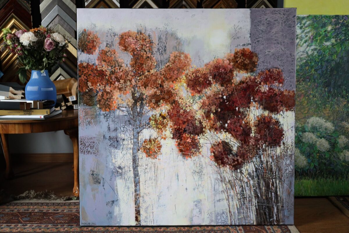 Obraz wykonany stylem impresjonistycznym, techniką akrylową, ręcznie malowany przez artystkę. Przedstawia fragment jesiennej łąki. Obraz utrzymany w ciepłych odcieniach. Idealny obraz na prezent lub jako mały artystyczny akcent w naszym domu, który z pewnością wzbogaci wnętrze.