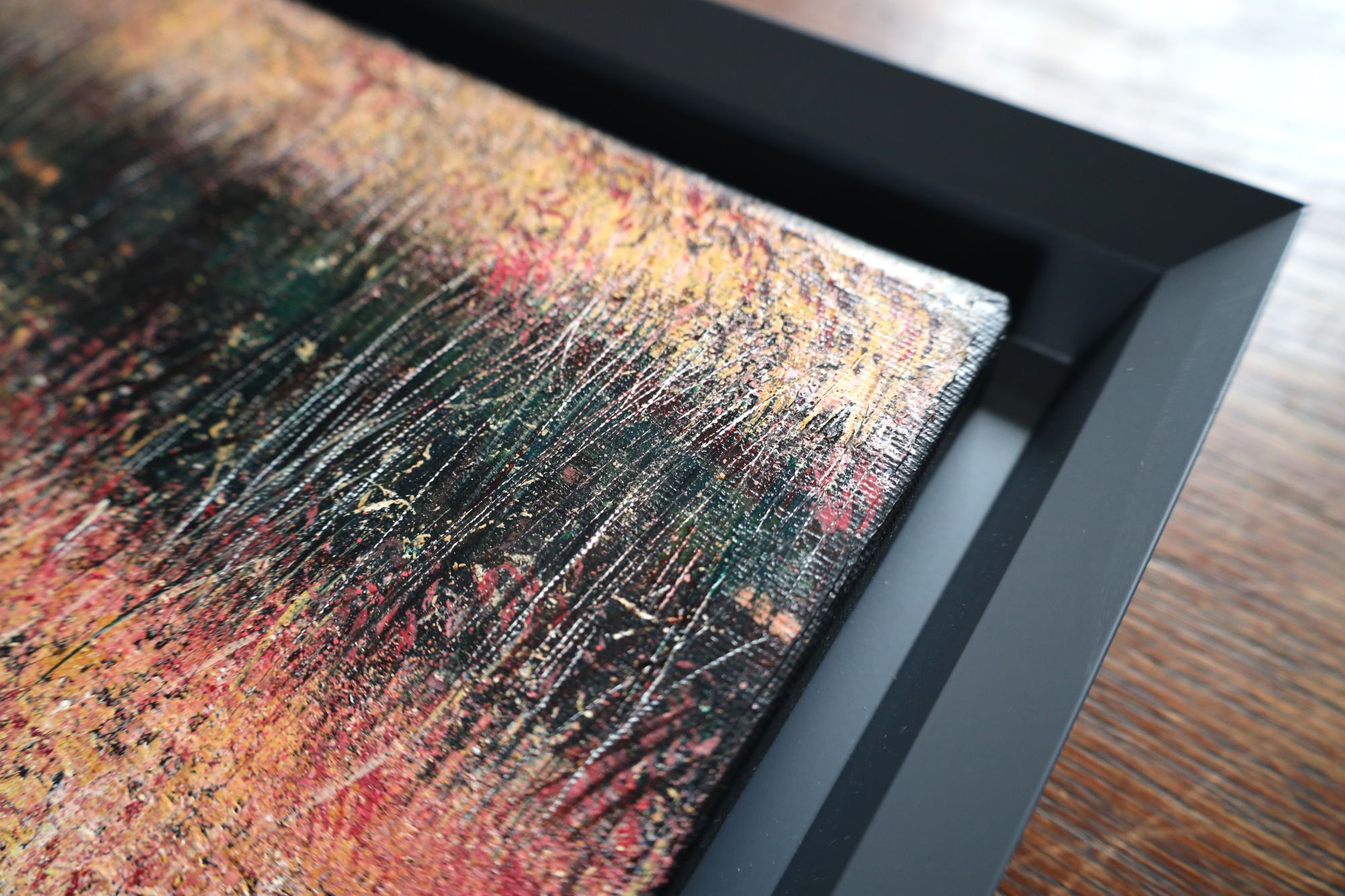 Obraz oprawiony w nowoczesną, drewnianą ramę typu american box.