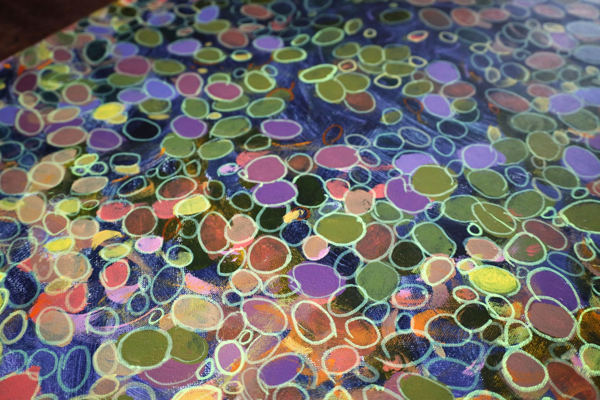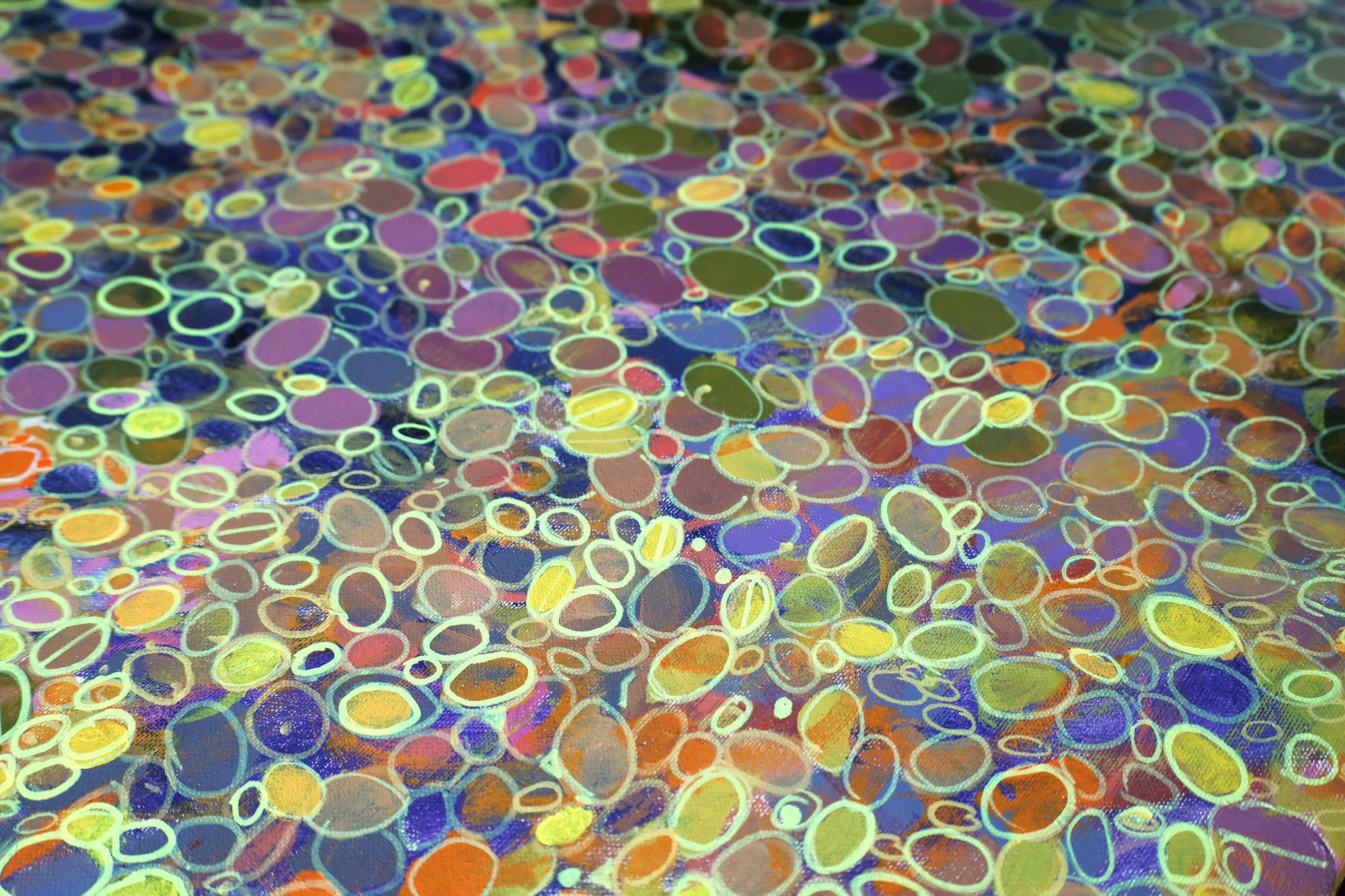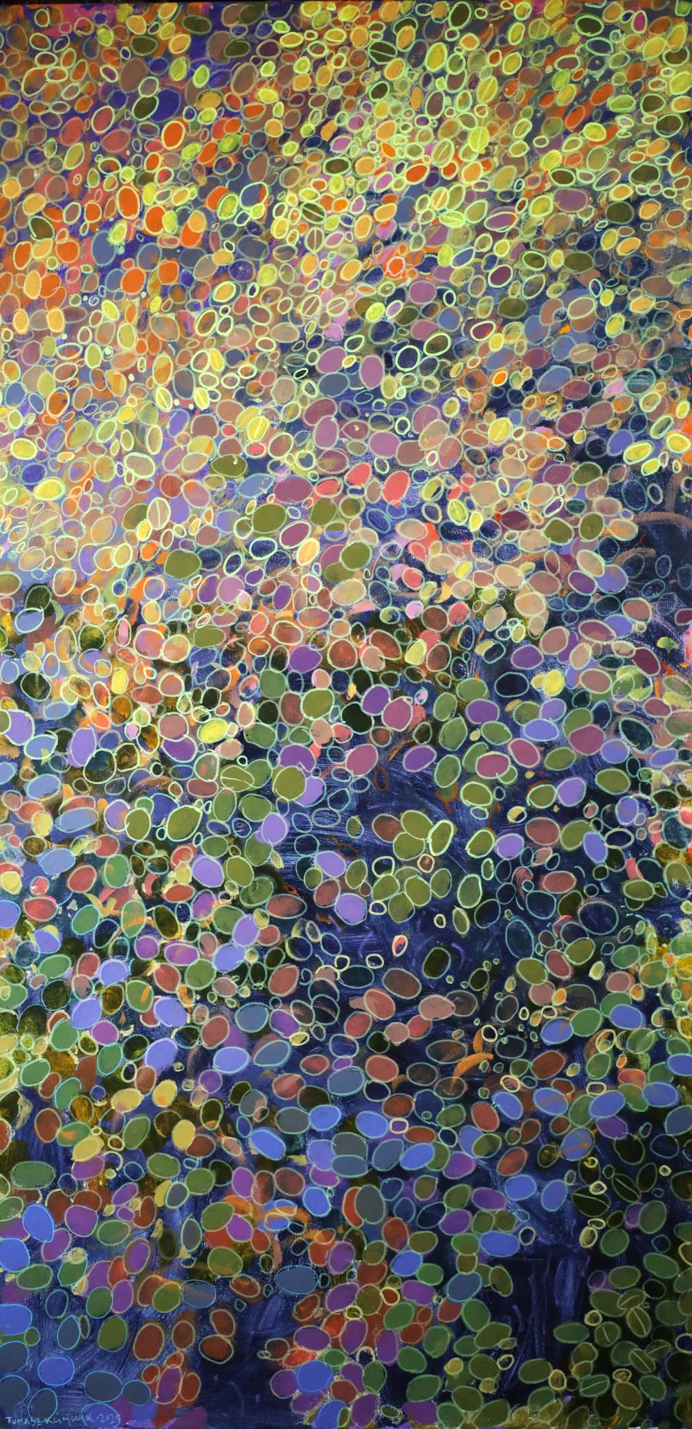 Nowoczesny obraz ręcznie malowany przez artystę. Szalony motyw ogrodu, pełen ciepła i słońca. Utrzymany w odcieniach żółci z refleksami błękitu i fioletu. Cała feeria barw ! Ten mocno energetyzujący obraz doda Twojemy wnętrzu charakteru !